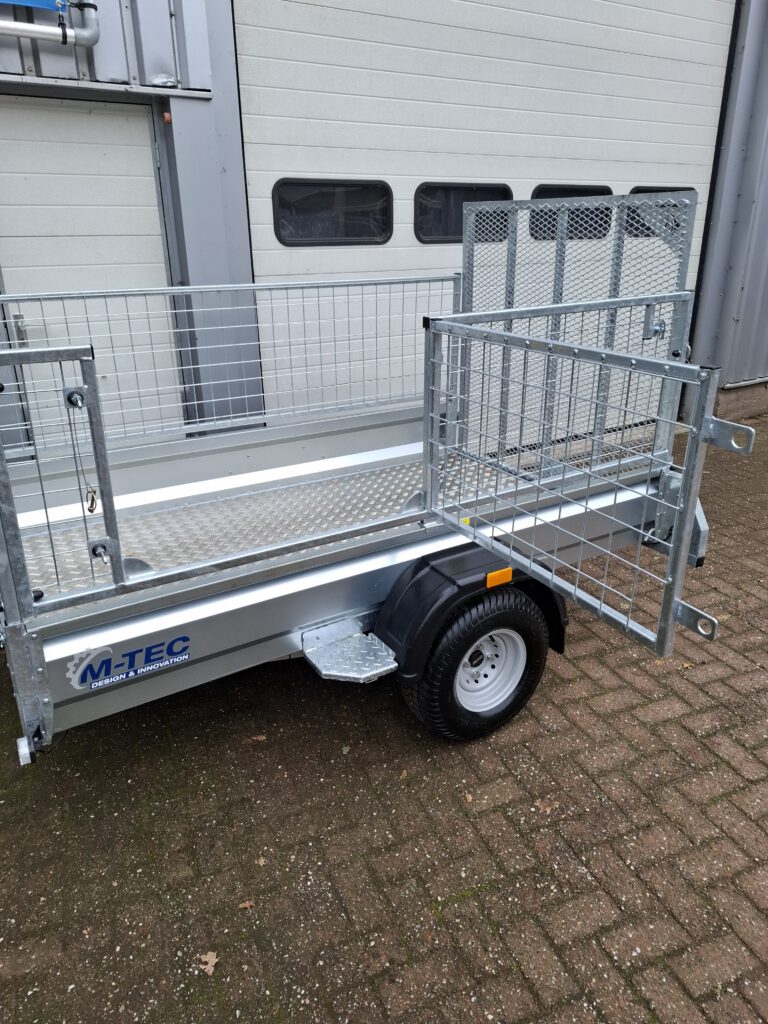 De M-TEC Quadmaster is uniek op de markt en biedt klanten een zijtoegangspoort om in en uit de quad of grasmaaier te stappen. Door het grotere formaat is hij geschikt voor quads met extra grote banden. De zwanenhals trekhaak zorgt voor een betere draaicirkel met de quad. Volledig gecertificeerd en geen kentekenbewijs vereist voor enkelassige 750kg aanhangwagens.